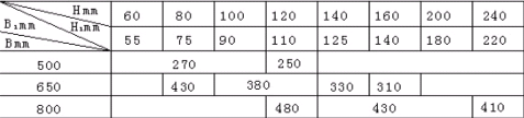 ⑴、輸送帶波紋擋邊膠帶由三部分組成:用普通輸送帶作為基帶,在帶的兩側(cè)增加波形擋邊; 橫隔板橫裝在兩波形擋邊之間。橫隔板主要有T、C、TC三種布置形式,其間距根據(jù)輸送量、輸送傾角及物料塊度等要求確定。輸送帶的主要結(jié)構及規(guī)格見圖二與表2。